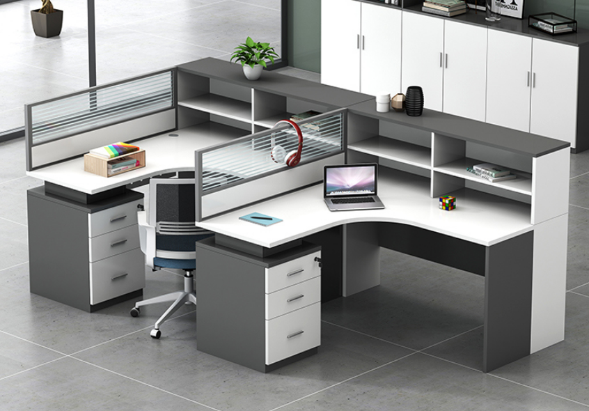 和办公桌融合在一起组成的办公工位,很多企业都会使用。